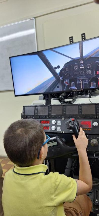 Kolejną atrakcją był symulator lotów, dzięki któremu dzieci mogły poczuć się jak prawdziwi piloci! Poznały również budowę samolotu i dowiedziały się, jak wiele umiejętności potrzeba, aby latać w przestworzach.
