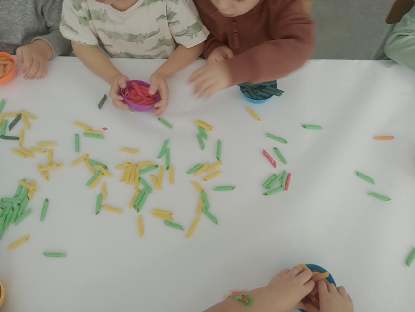 Tego dnia w grupie Koniczynek królował makaron! Dzieci z zaciekawieniem poznawały jego różne rodzaje, a następnie barwiły go kolorowymi farbami, tworząc z niego niezwykłe budowle. Podczas zajęć rozmawiały też o tym, jakie pyszne potrawy można przygotować z makaronu ? od zup po kolorowe sałatki.