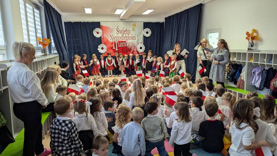 Dnia 7 listopada w naszym przedszkolu odbyły się obchody upamiętniające rocznicę odzyskania niepodległości przez Polskę. Z tej okazji dzieci z wszystkich grup oraz pracownicy przedszkola zebrali się, aby uroczyście świętować ten wyjątkowy dla Polaków czas. Wszyscy z powagą i w dużym skupieniu oglądali program artystyczny przygotowany Panie Wychowawczynie wraz z grupą Pszczółki. W ramach uroczystości również wspólnie odśpiewaliśmy hymn Polski. Piękne obchody tej uroczystości zwieńczył pochód naszych przedszkolaków w okolicach naszego przedszkola.