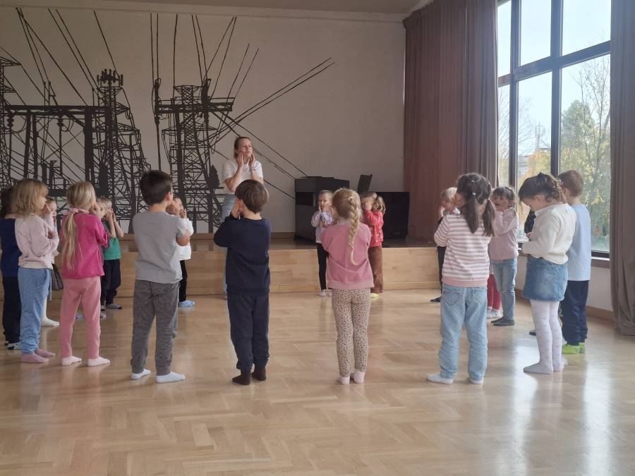 Przed wejściem do przedszkola na dzieci czekały wspólne tańce przy muzyce. Mali uczestnicy pokazali, jak świetnie potrafią bawić się w rytmie piosenek, a radosna atmosfera udzielała się wszystkim obecnym.