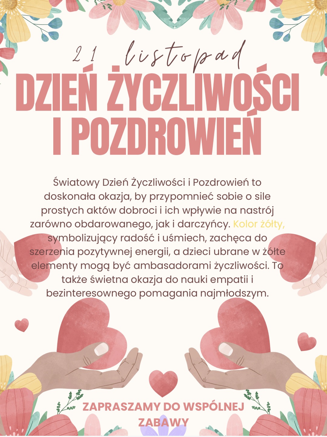 Dzień Życzliwości, który odbył się 21 listopada w naszym przedszkolu, okazał się nie tylko ciekawym wydarzeniem, ale również ważną lekcją dla wszystkich uczestników. Dzieci z każdej grupy miały okazję zastanowić się nad tym, czym jest życzliwość, gdzie można ją dostrzec w codziennym życiu i dlaczego jest tak istotna. W ramach wspólnej pracy stworzyły piękny, kolorowy łańcuch życzliwości, który symbolizował wzajemną pomoc i dobre relacje. Dzięki temu wydarzeniu, dzieci nauczyły się, jak ważne jest okazywanie sobie nawzajem szacunku i wspieranie się. Była to wspaniała okazja do rozwijania empatii oraz zrozumienia, jak istotne jest bycie dobrym człowiekiem na co dzień.