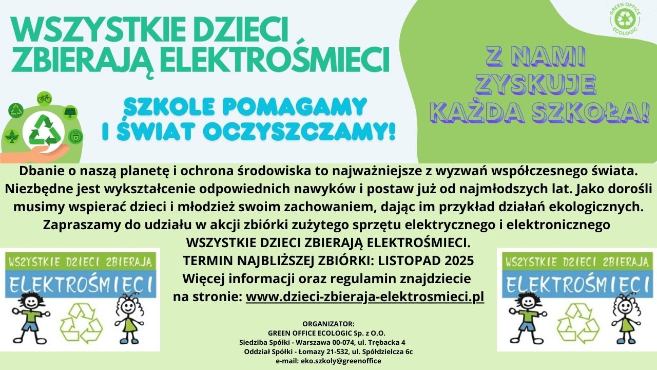 zachęcamy do wzięcia udziału w akcji SZKOLE POMAGAMY i ŚWIAT OCZYSZCZAMY!